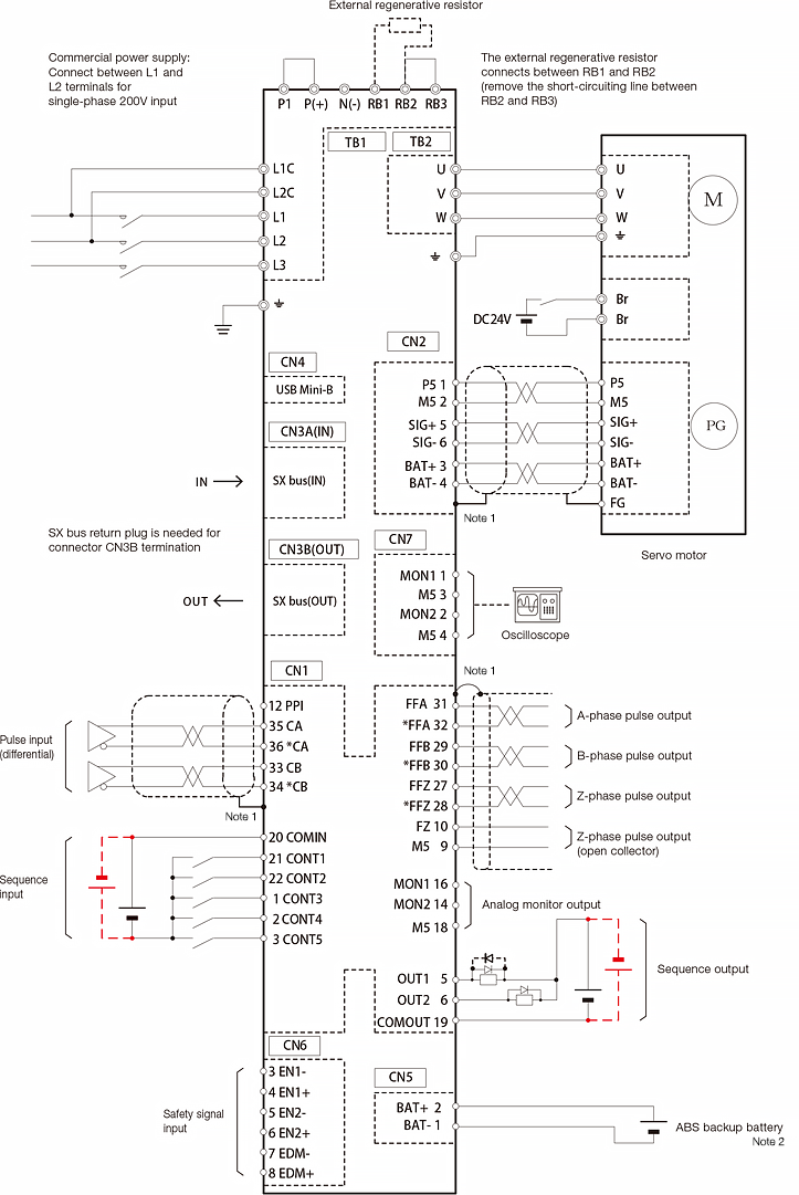 When using the encoder cable with the battery, remove the battery for ABS backup of CN5.